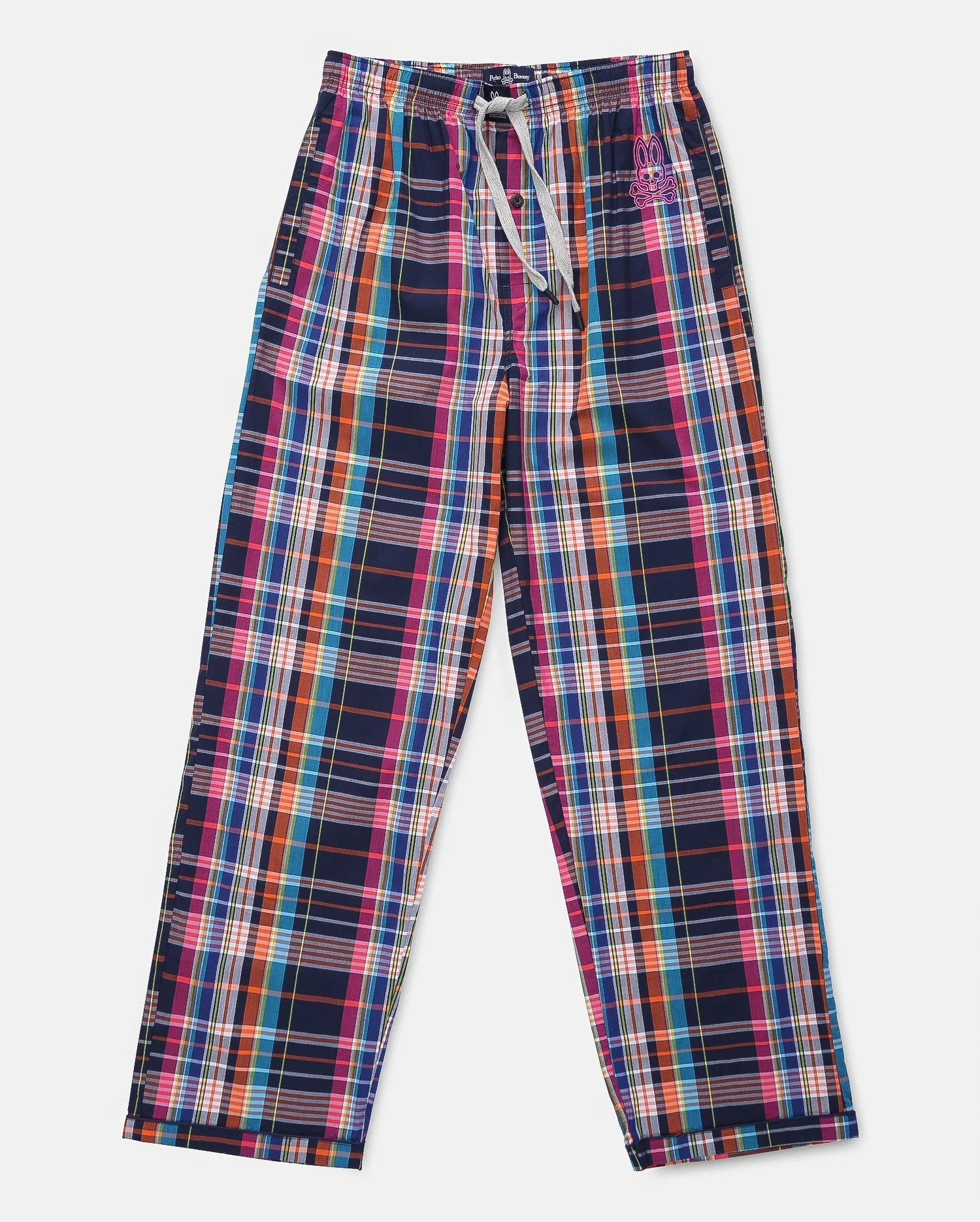 Slumber in style with this motley selection of Pajama Pants from Psycho Bunny! Made of 100% lightweight cotton and featuring side and back pockets, these pj bottoms have it all. Feel fashion forward as you lounge in bouy plaid with a fun multi-tone pattern. Stay classic with a splash of color as you snuggle up in multi bunny. Relax into your frisky side in the pecoat bunny. Whatever your sleep style is, these are the pajamas you've been dreaming of!