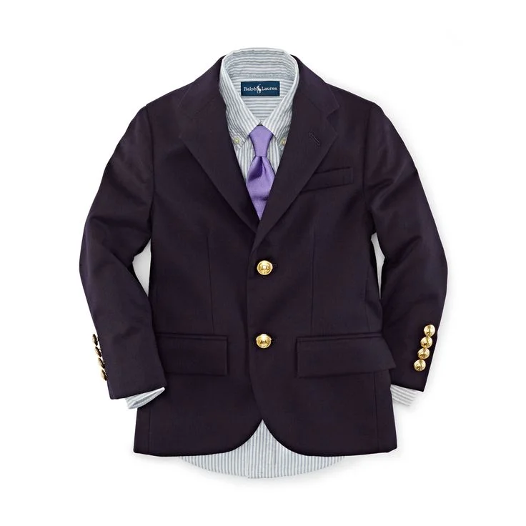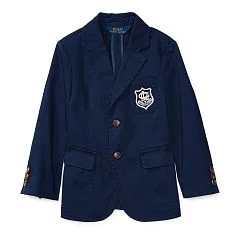 Public or private, your child gets the highest education in fashion with this collegiate-inspired coat. Lesson one: you can achieve great style without sacrificing comfort. A rich navy hue plus a polished RL crest refine regular jeans and tee, while soft cotton chooses chic over stuffy.